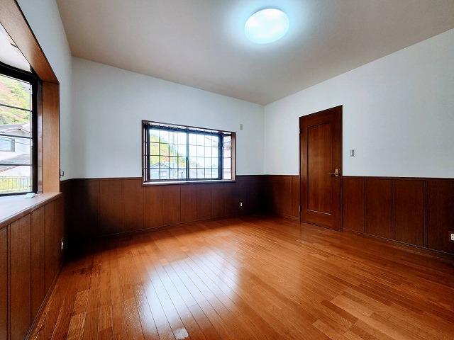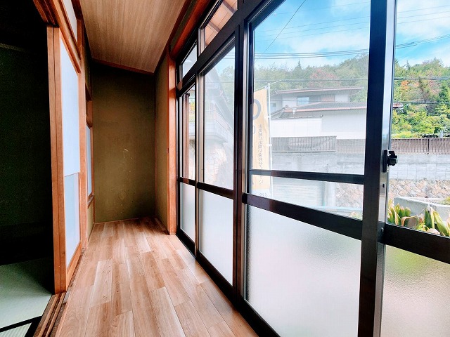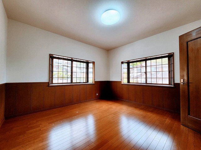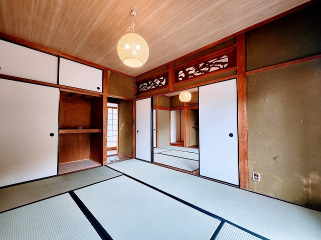 一階の和室は続き間となっており、大人数の来客にも対応できます!照明は新しいものに交換されており、丸い照明により和モダンな雰囲気の和室となっております!廊下側の襖を開けると東南からの採光良好で明るいです♪