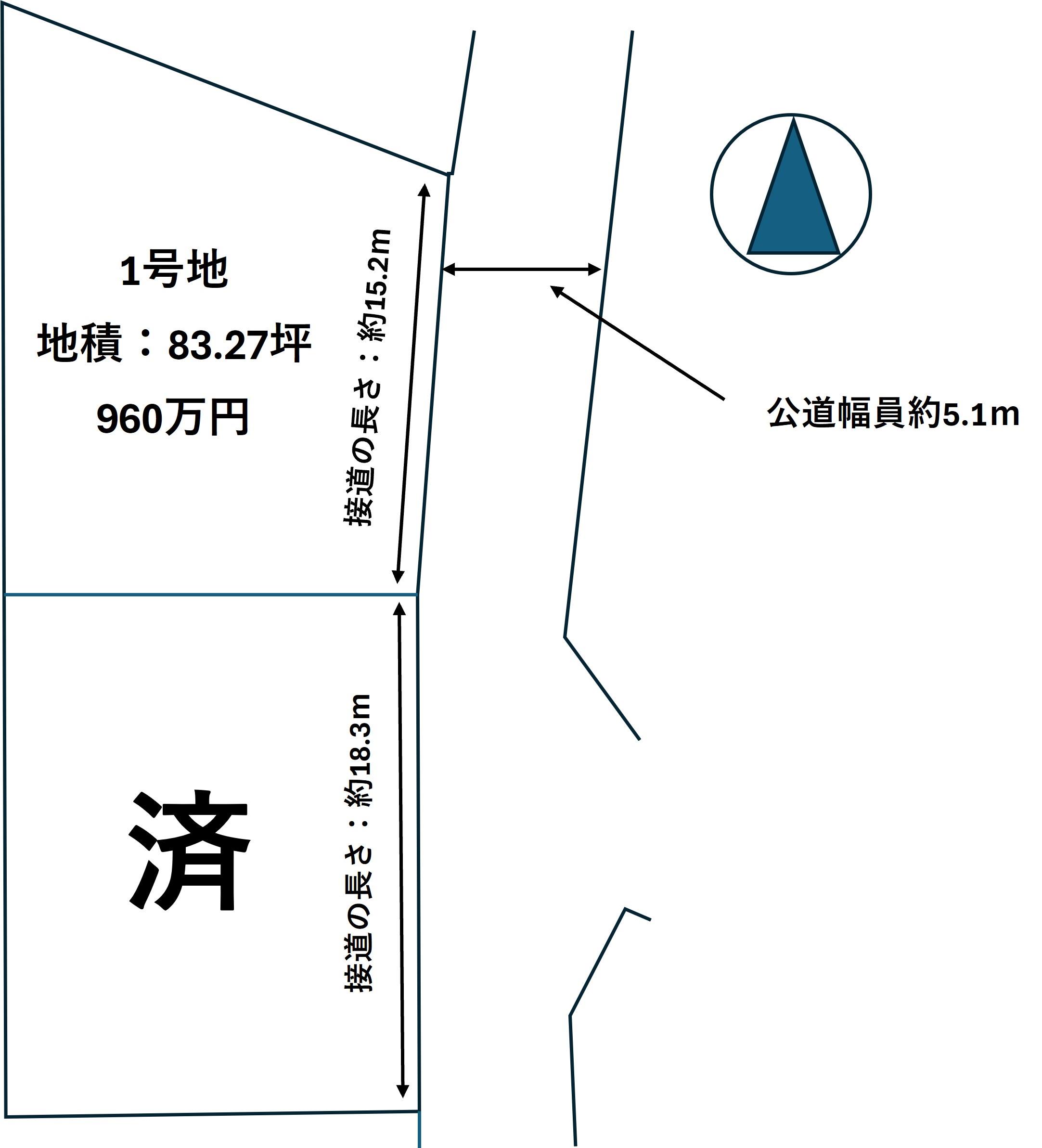 | 接道状況 | [ 東 / 道路幅員 約5.1m 接道幅 公道 約15.2 m ] |