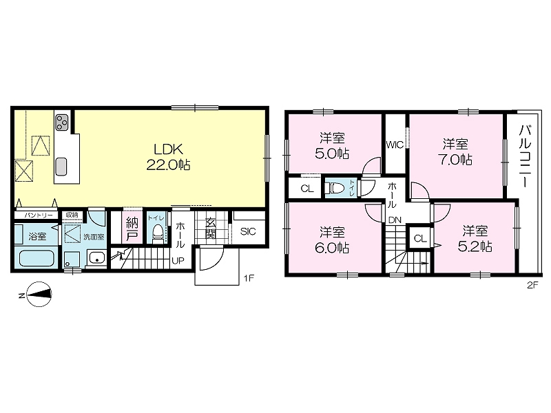 | 間取り | 4LDK( 洋室 7・6・5.2・5 帖 / LDK 22 帖 ) | ||