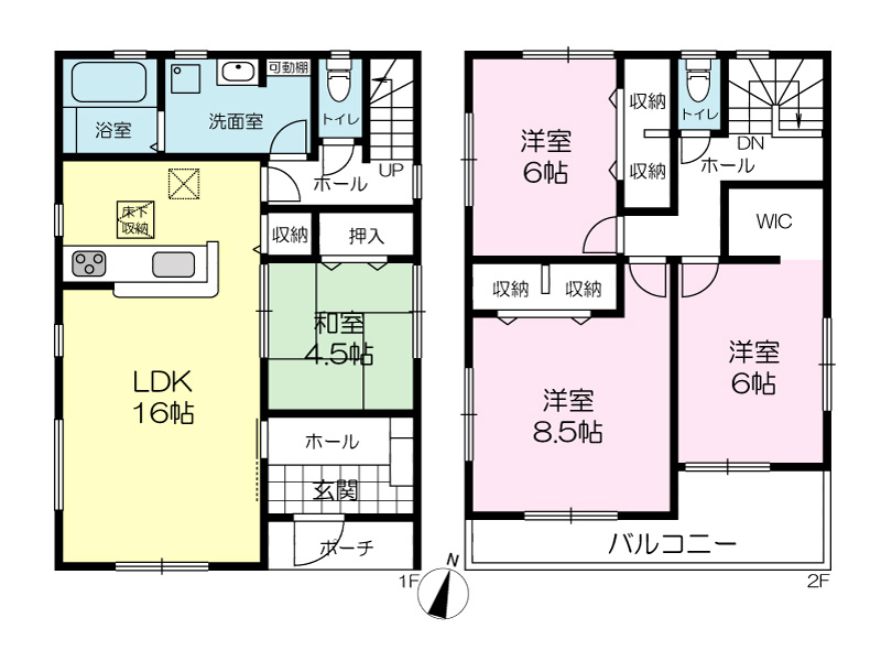 | 間取り | 4LDK( 洋室 8.5・6・6 帖 / 和室 4.5 帖 / LDK 16 帖 / ウォークインクローゼット 1 帖 ) | ||