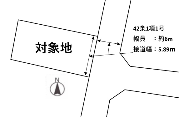 接道状況 [ 東 / 道路幅員 約6m 接道幅 公道  ]