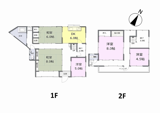 | 間取り | 5DK+S( 洋室 5・8・4.5 帖 / 和室 6・8 帖 / DK 6 帖 / 納戸 3.5 帖 ) | ||