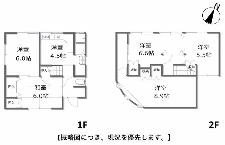 | 間取り | 5DK( 洋室 6・5.5・6.5・8.9 帖 / 和室 6 帖 / DK 4.5 帖 ) | ||