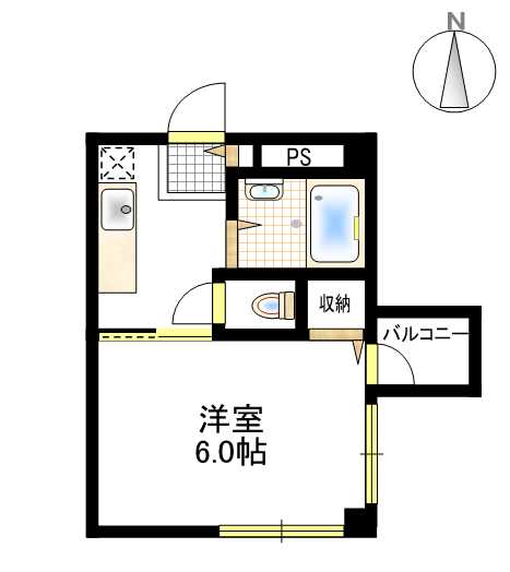 | 間取り | 1K( 洋室 6 帖 / K 帖 ) | ||