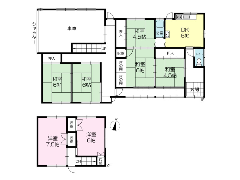 間取り 7DK( 洋室 7.5・6 帖 / 和室 6・6・6・4.5・4.5 帖 / DK 6 帖 )
