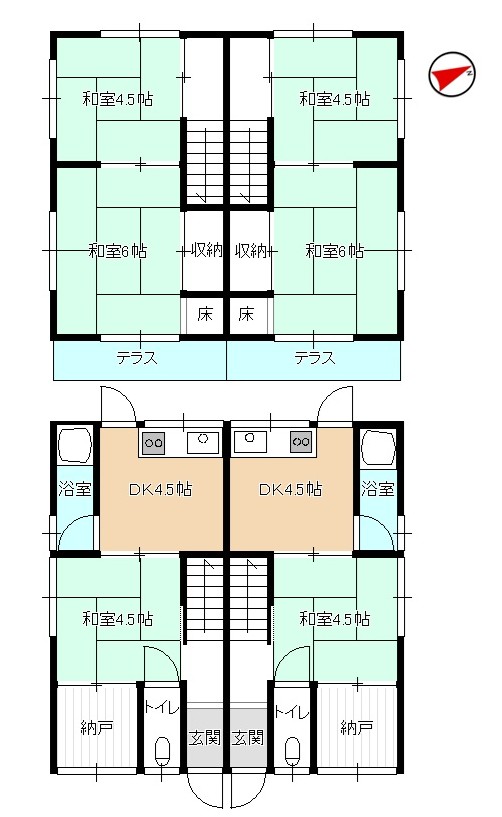間取り 3DK( 和室 4.5・4.5・6 帖 / DK 4.5 帖 )
