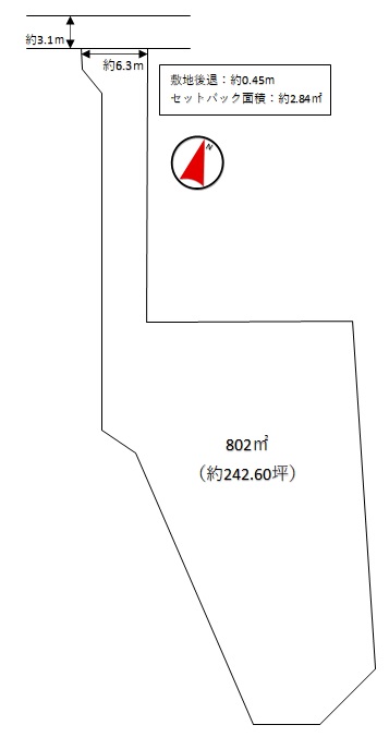 | 接道状況 | [ 北 / 道路幅員 約3.1m 接道幅 公道 約6.3 m ] |