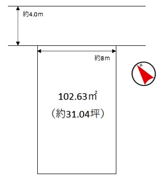 | 接道状況 | [ 北西 / 道路幅員 約4m 接道幅 公道 約8 m ] |