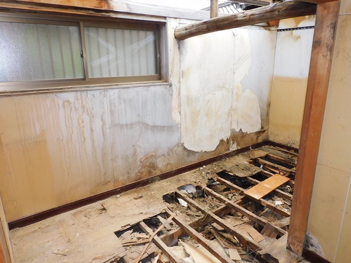 建物は築年数が古く屋根・床の一部が破損しており、工事が必要です。
