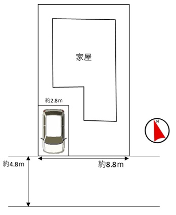 | 接道状況 | [ 南 / 道路幅員 約4.8m 接道幅 公道 約8.8 m ] |