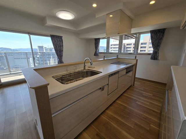 人気のアイランドキッチンなので壁に囲まれず、リビングも広く開放的で明るい雰囲気を感じられます。