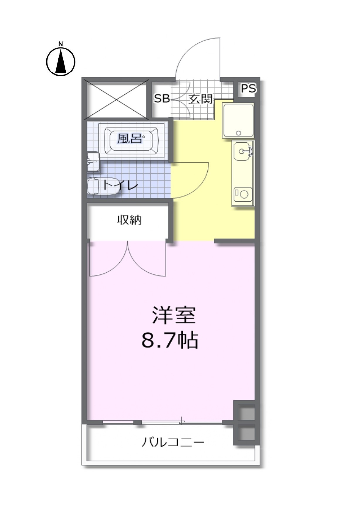 間取り | 1K( 洋室 8.7 帖 / K 帖 ) | ||