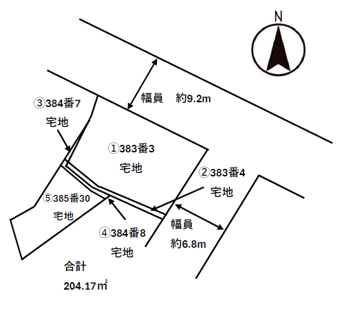 | 接道状況 | [ 北東 / 道路幅員 約9.2m 接道幅 公道 ] [ 南東 / 道路幅員 約6.8m 接道幅 公道 ] |
