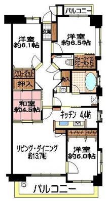 | 間取り | 4LDK( 洋室 6.5・6.1・6 帖 / 和室 4.5 帖 / LDK 18.1 帖 ) | ||
