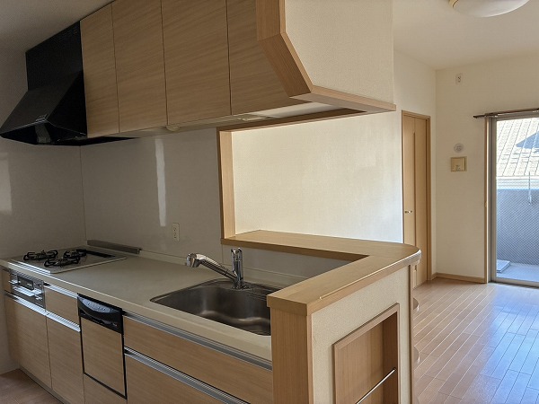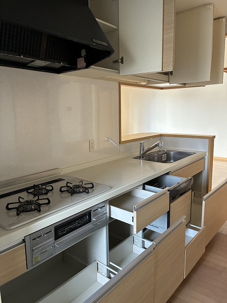 キッチンに出窓がありますので、料理の匂いや湿気がこもりにくいです!調味料や植物を置く棚にもなります◎