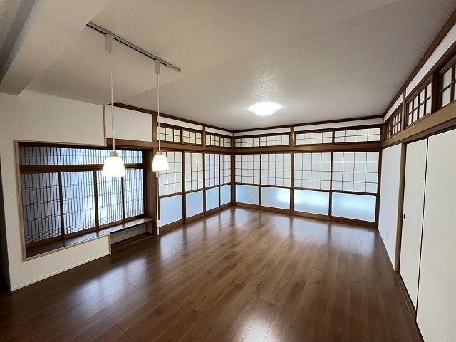 ・和のデザインを活かしたLDKです!障子越しに広がる柔らかな光が、新調されたフローリングに温かみを添えます。システムキッチンで家事もしやすく、『和』の落ち着きを大切にしながらも、ライフスタイルは現代的に。そんな、どこかホッとするのに新しい、和モダンな暮らしを始めてみませんか?