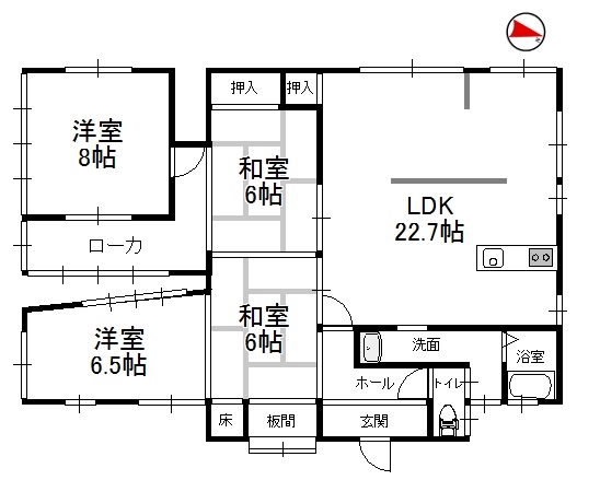 間取り | 4LDK( 洋室 6.5・8 帖 / 和室 6・6 帖 / LDK 22.7 帖 ) | ||