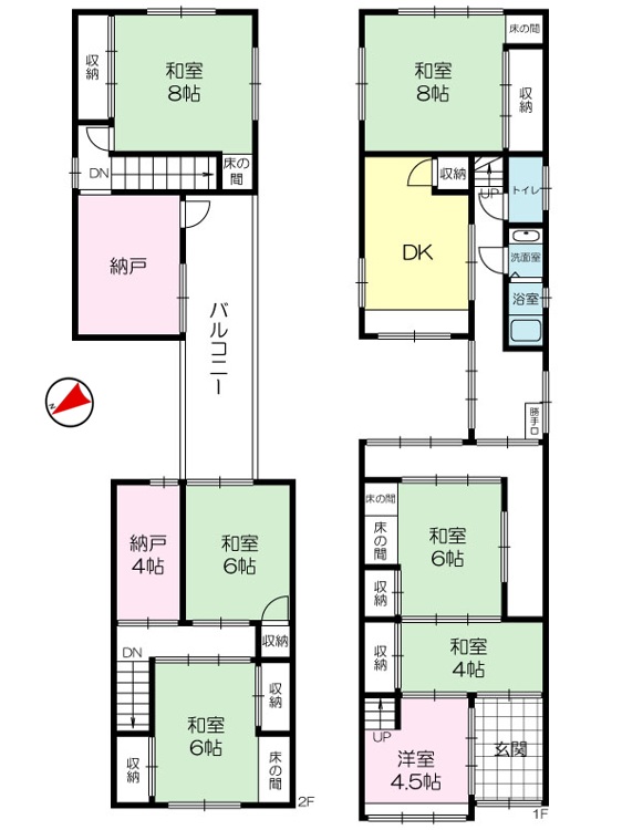 間取り | 7DK+S( 洋室 4.5 帖 / 和室 4・6・6・6・8・8 帖 / DK 7 帖 / 納戸 6 帖 ) | ||