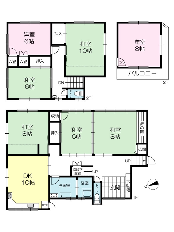 間取り 7DK( 洋室 6・8 帖 / 和室 10・8・8・6・6 帖 / DK 10 帖 )