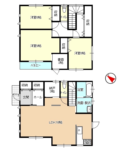 間取り | 3LDK( 洋室 6・6・9 帖 / LDK 18 帖 ) | ||