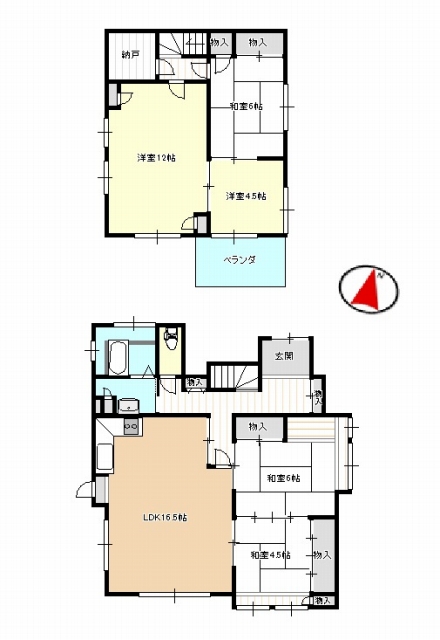 | 間取り | 5LDK+S( 洋室 12・4.5 帖 / 和室 6・4.5・6 帖 / LDK 16.5 帖 / 納戸 2 帖 ) | ||
