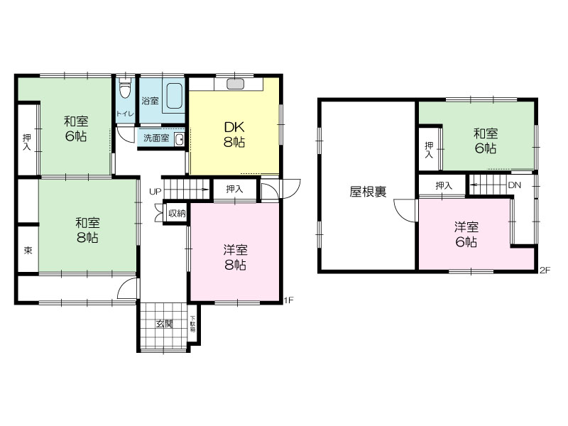 間取り 5DK( 洋室 8・6 帖 / 和室 8・6・6 帖 / DK 8 帖 / 屋根裏収納 14 帖 )
