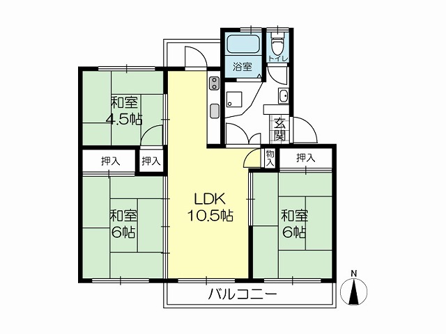 | 間取り | 3LDK( 和室 6・6・4.5 帖 / LDK 10.5 帖 ) | ||