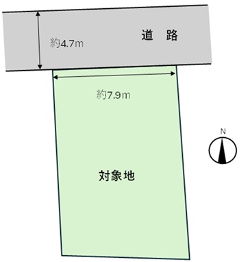 接道状況 [ 北 / 道路幅員 約4.7m 接道幅 公道 約7.9 m ]