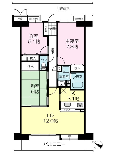 | 間取り | 3LDK( 洋室 7.3・5.1 帖 / 和室 6 帖 / LDK 15.1 帖 ) | ||